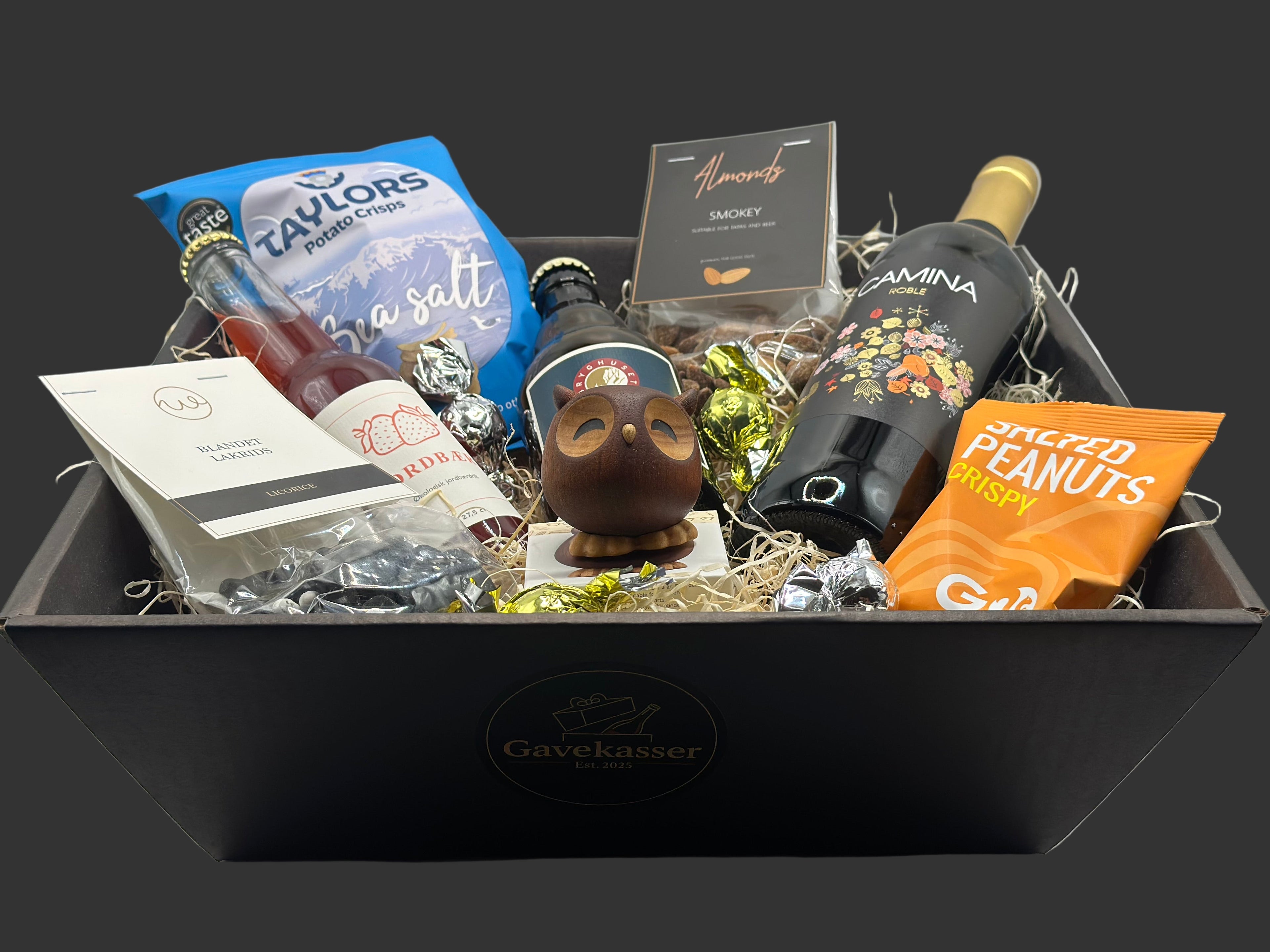 Udforsk vores udvalg af færdige gavekasser – eller sammensæt din helt egen blanding af lækre delikatesser.